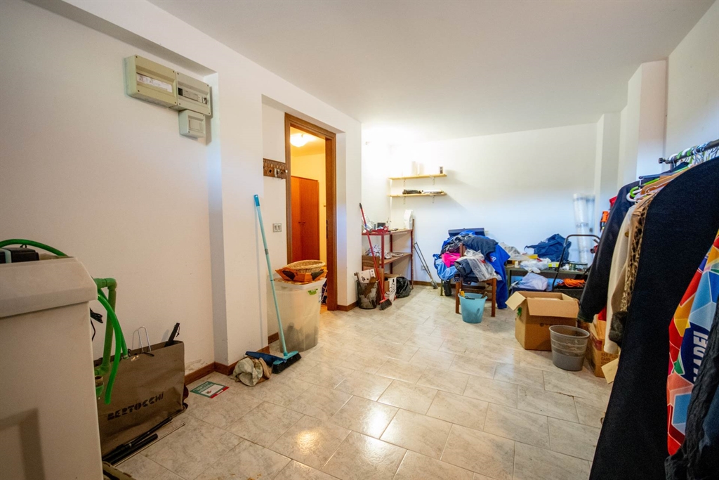 Dal vano scale interno si accede al piano seminterrato, dove troviamo una taverna accogliente con camino a legna, perfetta per convivialità e relax. Completano il livello una comoda autorimessa, un bagno finestrato e un ripostiglio sottoscala.