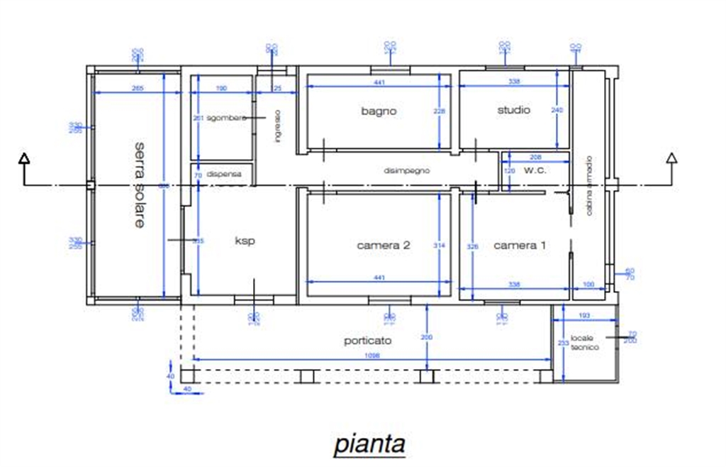 Il progetto prevede la creazione di una luminosa zona giorno composta da un ampio soggiorno con cucina a vista e comoda dispensa, valorizzata dalla presenza di una grande serra solare, ideale per godere della luce naturale in ogni stagione.
